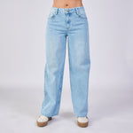 Jean wide leg rígido baby blue 100% algodón