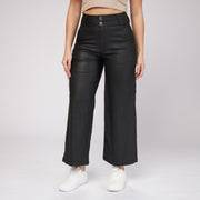 Ref: 552371 Pantalón culotte tiro alto wide leg efecto cuero licrado negro