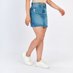 Falda corta colombiana en denim rígido – Azul medio 100% algodón