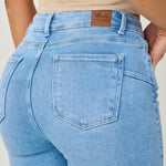 Jean colombiano straight boot tiro medio en denim stretch – Azul claro 100% colombiano