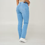 REF: 552575 Jean straight boot tiro medio en denim stretch, color zul claro