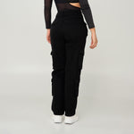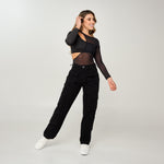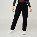 Jean colombiano cargo bota recta tiro alto en denim rígido negro – 100% colombiano