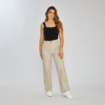 Pantalón colombiano cargo bota recta tiro alto en denim stretch – Arena 100% colombiano