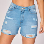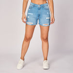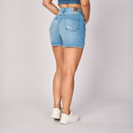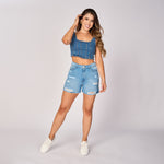 Short largo colombiano licrado azul claro en denim stretch – 100% colombiano