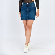 Ref: 558066 Falda corta en denim rígido, color azul oscuro 100% algodón
