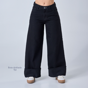Ref: 552653 Jean colombiano wide leg tiro medio en denim rígido, color negro