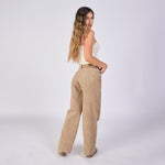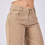 Jean wide leg rígido tiro medio en denim kaki