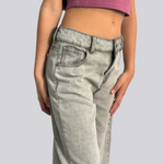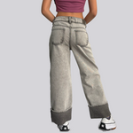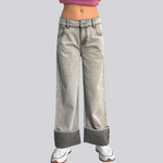 Diseño sofisticado y único. Confeccionado en 100% algodón, este jean ofrece una textura rígida y cómoda. Su corte wide leg en gris claro con contraste en la bota doblada fija en tono gris oscuro agrega un toque de elegancia y originalidad a tu look.