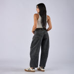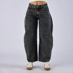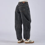 Este jean en tono gris es silueta barrel que aporta un fit moderno y relajado. Confeccionado en denim rígido 100% algodón, incluye bolsillos delanteros, bolsillos traseros clásicos, pinza en la parte trasera de la cintura y cortes originales en los laterales que definen esta silueta tan especial.