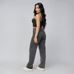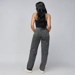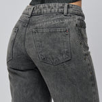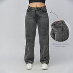 Jean colombiano straight tiro alto en denim rígido 100% algodón – Gris