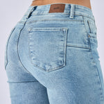 Este jean straight boot de tiro medio combina el balance perfecto entre comodidad y estilo. Su denim licrado se ajusta suavemente al cuerpo, realzando tu figura sin perder libertad de movimiento. El corte recto con bota ligeramente amplia estiliza la silueta y aporta un toque clásico que nunca pasa de moda.