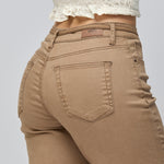 Jean colombiano para mujer con silueta straight y fit semi ajustado que estiliza mientras ofrece comodidad real. Confeccionado en denim licrado, brinda ajuste flexible ideal para uso diario, oficina y salidas. Su color café, tono de temporada, eleva cualquier look e incluye cinturón removible en denim para mayor versatilidad.